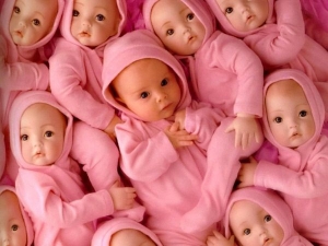 baby among dolls